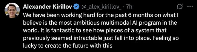 在OpenAI,Alexander Kirillov带领团队致力于多模态模型的研发工作,推动模型不仅能够处理文本,还能同时理解和生成图像、音频等多种数据。此前,他在Meta参与并主导爆火的「Segment Anything」项目。