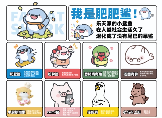 “肥肥鲨”以一只乐天派的小鲨鱼为主角,讲述其在人类社会生活退化成“旱鲨”的趣味日常。