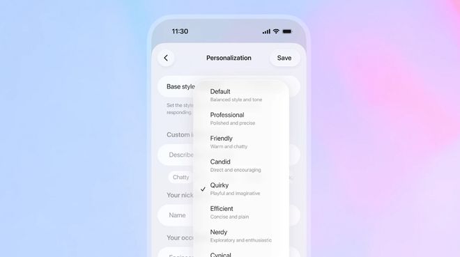 OpenAI为ChatGPT提供了更为直观、更有效的语气控制选项。除了“专业”、“坦诚”和“古怪”这三个新增的性格选项之外,如今用户还可在高级控制选项中直接调整回复的简洁程度、亲切程度、易读性以及emoji(表情符号)的使用频率。