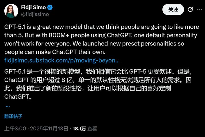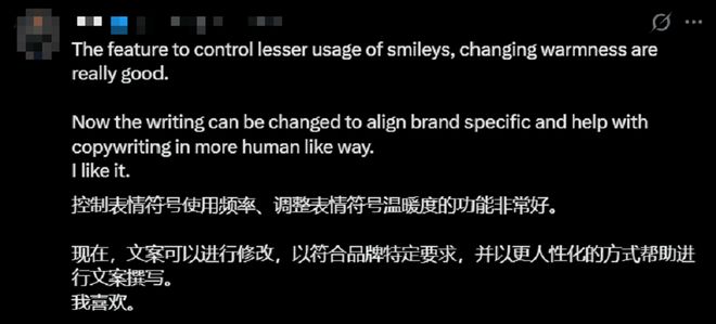 新增的自定义功能也获得网友好评。对于一些将模型用于生产力场景的用户而言,这种控制意味着可以输出更符合特定要求的文案。