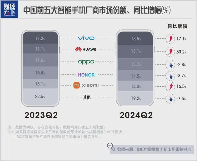 而在上一财季中,苹果在六个季度中已有五个季度销量出现了下滑。IDC数据显示,2024年Q2,全球手机出货量同比增长6.5%。而iPhone的出货量虽同比增长1.5%,但落后于全球增速,市场份额也从16.6%下降到了15.8%。