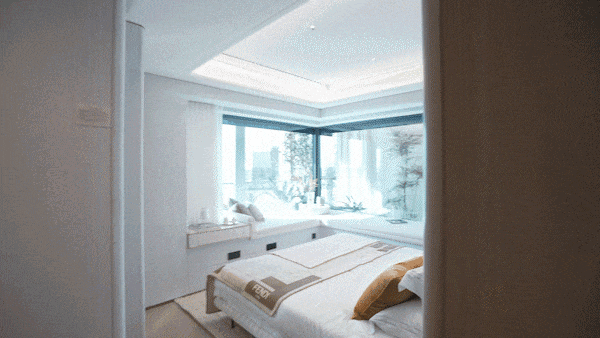 项目的灵动空间也非常丰富,除了大尺度阳台,主次卧配置大飘窗,阳台可以并入房间内,飘窗均为非承重结构,后期同样可砸,灵动空间拓展后整体的尺度感足以媲美以往150㎡的户型.