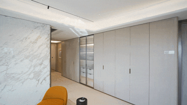 这些收纳空间分布在房间的各个角落,电视柜、餐边柜、厨房收纳、岛台收纳、家政收纳都在向极限拓展.