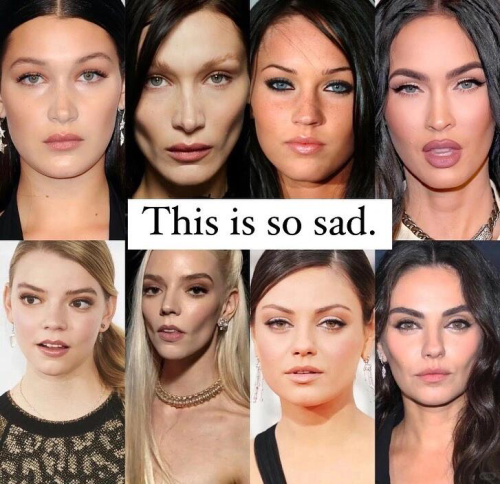 有外媒统计做过统计,近年沉迷于嘬腮审美的女明星不在少数:从顶级巨星安吉丽娜·朱莉,到影坛新星安雅·泰勒-乔伊,从超模贝拉·哈迪德到歌手凯蒂·佩里(水果姐),这些长相风格各异的女明星,却在让自己脸颊凹陷这条路上达成了共识。