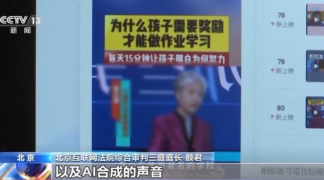 北京互联网法院综合审判三庭庭长 颜君:因为有李女士的肖像的这样的一个视频,带上一个高度和她近似的AI合成的声音,会让我们听众,这个视频的观众觉得这个视频就是李女士录的,是李女士对于这个图书进行了推荐。
