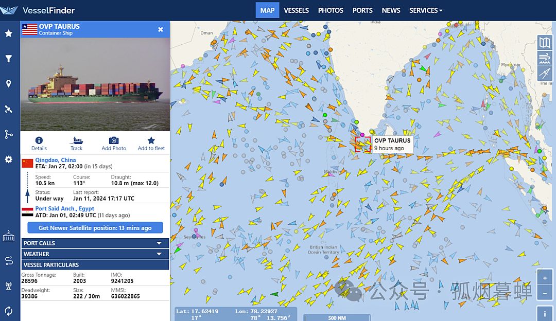 “OVP 金牛座号”(OVP TAURUS),船籍利比里亚,今年1月1日从埃及塞得港出发,预计将于1月27日抵达中国青岛。该船曾于近期停靠在俄罗斯的圣彼得堡、布隆卡,以及埃及的塞得港。当前船舶状态备注:目的地中国青岛,全体船员来自中国(CNTAO_ALL CHINESE)。