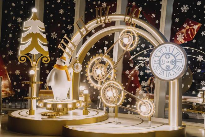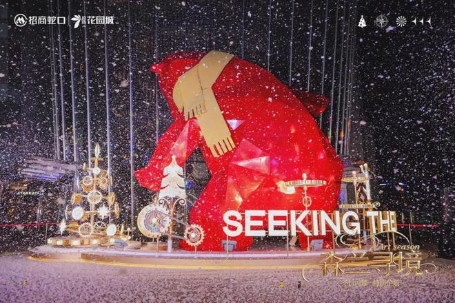 与复地活力城的“梦幻飞马”遥相呼应,一只系着围巾的巨型大熊空降森兰花园城。围绕“森兰寻境 冬日奇遇”主题,一系列兼具颜值与互动感的美陈装置,从森兰花园城户外广场延伸至室内空间,将温暖与梦幻铺满每个角落,打造出一座沉浸式的“冬日秘境”。