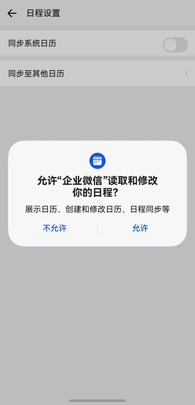 其实,现在的鸿蒙版企业微信整体体验已经比较完善了,而且还有不少鸿蒙独有的创新体验。像我个人很常用的日程接入系统日历,在手机日历里就能直接看工作待办和近期的会议(需要先在工作台-日程-设置中开启该功能);还有发图片和文件时支持安全访问机制,只授权特定图片,隐私保护做得很到位;给同事拍文档图片时,可以直接用系统原相机,画面更清晰。