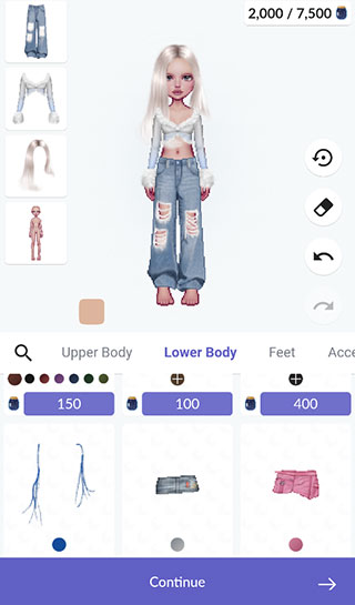 3.选择对应的服饰,有的支持多种颜色,可以变色,人物右侧有上一步和下一步,橡皮可以撤销角色身上的一切装扮。
