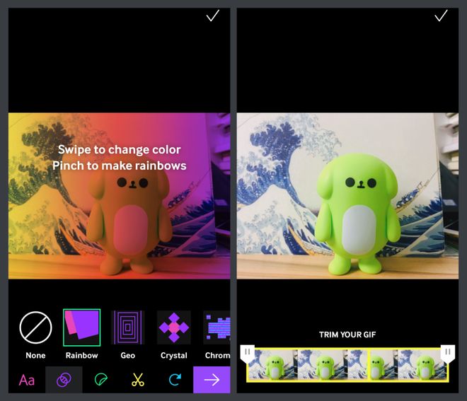 此外,GIPHY 内置的功能或特效,可以帮助用户制作出自己的 Gif,制作 Gif 的素材可以是静态的图片,也可以是视频。