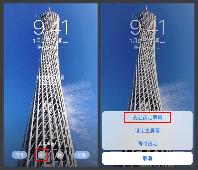 保存实况照片后,开启实况照片,将实况照片设置为锁屏壁纸,在锁屏状态或下拉顶部通知栏的状态下,长按屏幕,就可以看到实况照片动起来了。