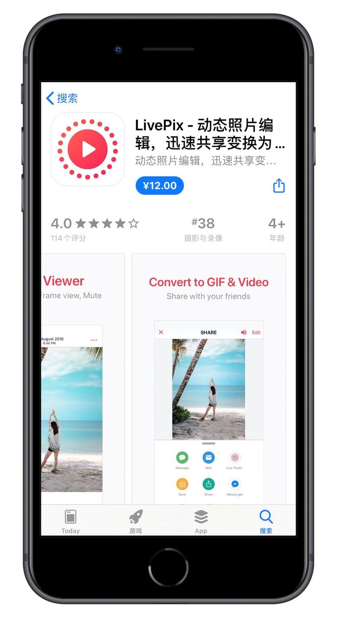 与 imgLive 一样,LivePix 也可以将实况照片转换为 Gif 或视频,方便用户进行共享。