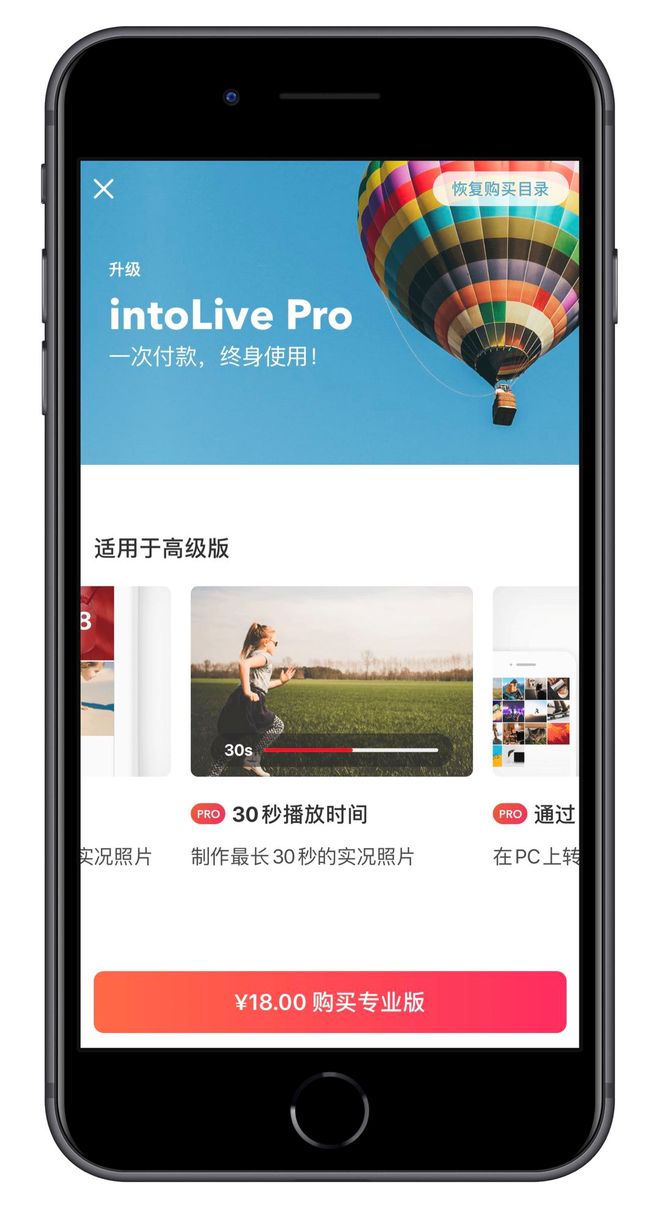 intoLive 免费版可以导出 5 秒以内的实况照片,专业版最多可以导出时长为 30 秒的实况照片。