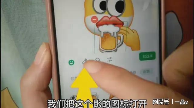 那么在这里首先要选择一个好看的颜色,比如说我选择这个黄色的,我把它选择上了之后,然后我们在光标处来添加我们需要添加的文字。输入好了之后,我们再点右上方的“完成”,那么我们的表情包立刻在这里就可以看得清清楚楚的。