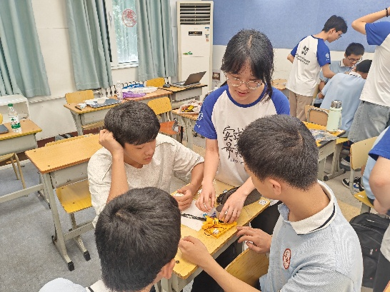 实践团设计了一系列安全、直观、趣味性强的动手实验,让抽象知识变得可触可感。带领学生开展物理特性体验,通过引导学生搭建半导体温差发电装置、操作镍钛记忆合金丝、设计不同硬度的纸桥承重结构、观察毛细现象中色彩的绚丽绽放、亲手参与非遗扎染等活动,采用“理论-观摩-实操-问答”四位一体模式,讲师们善用比喻、生活案例和多媒体等方式,让复杂知识通俗易懂。
